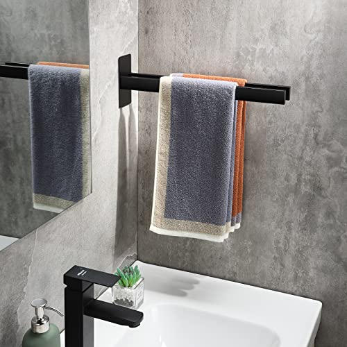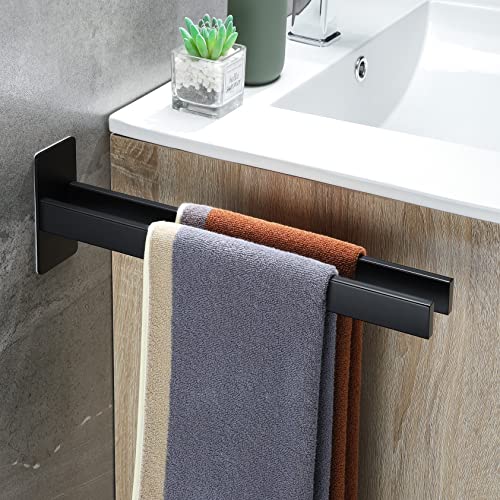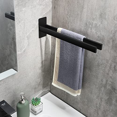 Gsocel - حامل فوط مزدوج مربع من الفولاذ المقاوم للصدأ من جي سوسيل، حامل فوط للحمام بدون ثقب ذاتي اللصق حامل مناشف للحمام والمطبخ يثبت على الحائط، أسود مطفي، 39 سم