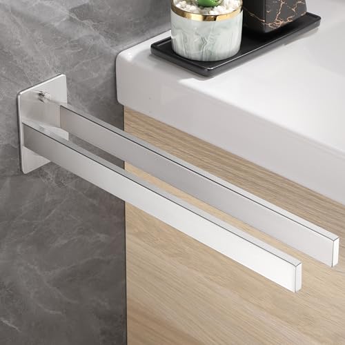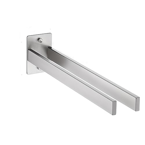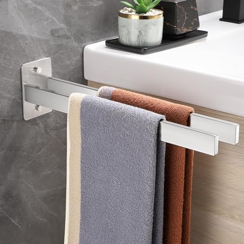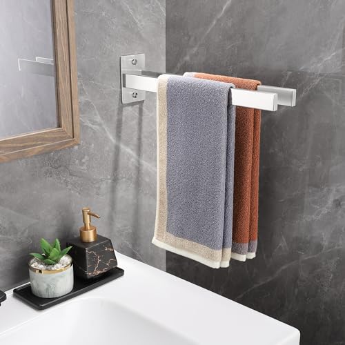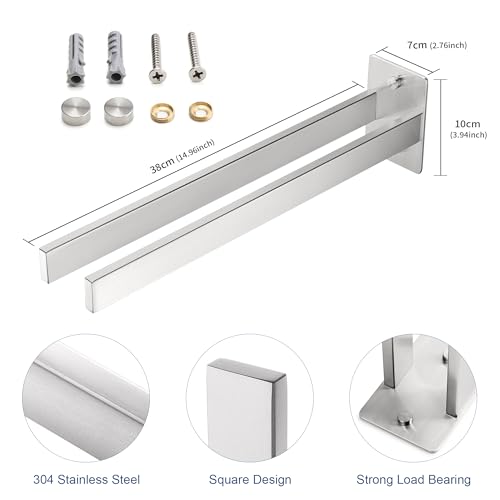 Gsocel - حامل مناشف من الستانلس ستيل من جسوسيل، حامل مناشف مزدوج مربع الشكل للحمام والمطبخ 38 سم، فضي