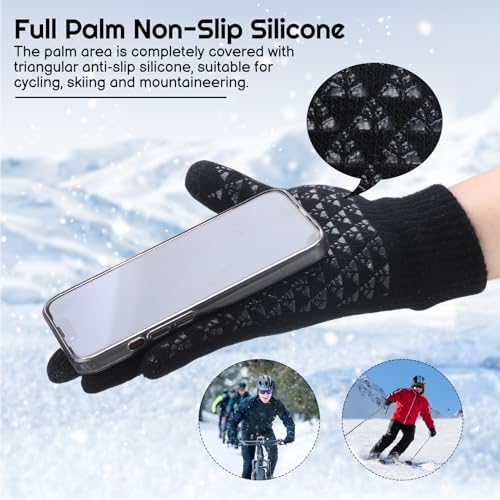 GSrenyu - قفازات حرارية شتوية للنساء من جي اس رينيو، لشاشات اللمس، قفازات شتوية محبوكة، مناسبة للقيادة والجري والأنشطة الخارجية، قفازات تزلج للرجال والنساء