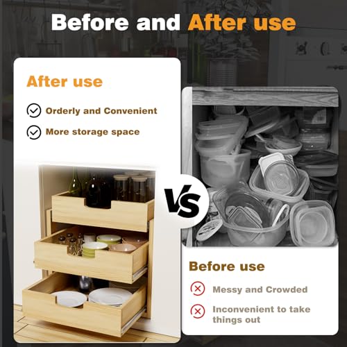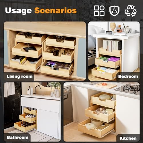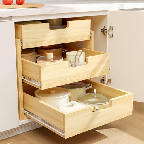 Gsskny - منظم خزانة قابل للسحب من جي اس اس كيه ان واي، ادراج منزلقة 23 انش عرض × 21 انش عمق للخزائن، ادراج خشبية ناعمة قابلة للسحب، منظم خزانة القاعدة للمطبخ والمخزن والحمام
