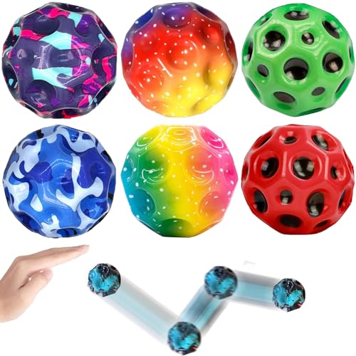 GSXNKK - كرة فضاء نطاطة صغيرة وخفيفة الوزن على شكل قمر من جي اس اكس ان كيه كيه، عبوة من 6 كرات