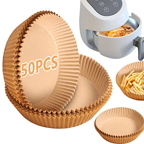 GSY - قوالب ورقية للمقلاة الهوائية للاستعمال مرة واحدة من جي اس واي، بطانات مقلاة هوائية دائرية مضادة للالتصاق للاستعمال مرة واحدة 50 قطعة، مقاومة للزيت والماء، ورق زبدة للخبز والتحميص
