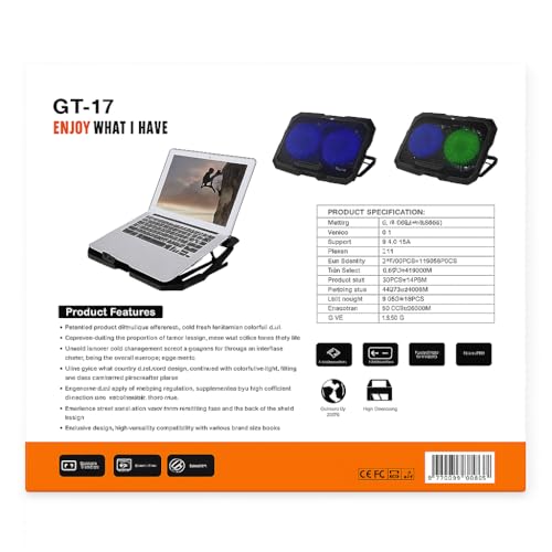 Generic - gt -17 لوحة تبريد للحاسوب المحمول، مراوح LED مزدوجة، تصميم فريد، تدفق هواء فائق