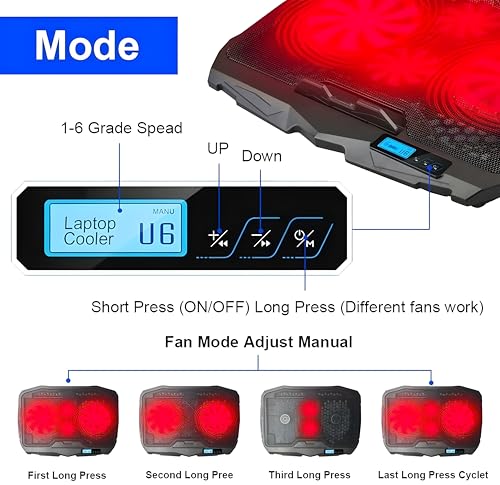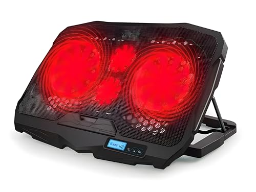 Generic - مروحة لابتوب موديل GT-18 تبريد قوي 4 مراوح -حامل مدمج قابل للتعديل -بإضاءة LED وشاشة LCD 6 مستويات تبريد -أسود