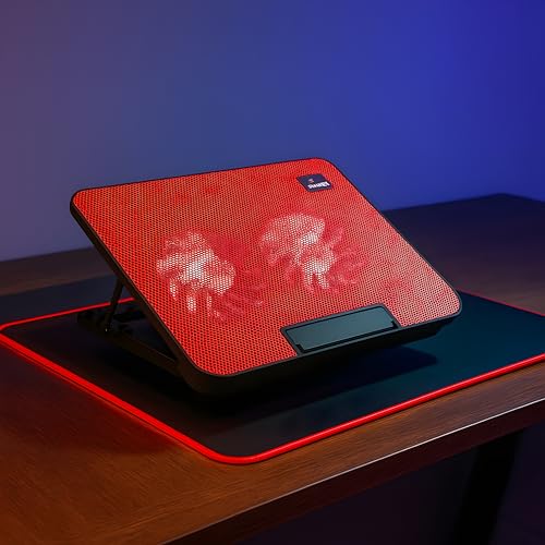 Generic - مروحة تبريد لابتوب GT-99 بمروحتين 14 سم تصميم مريح وضوء أزرق – مقاس حتي 17 بوصة -6 مستويات ارتفاع - أسود