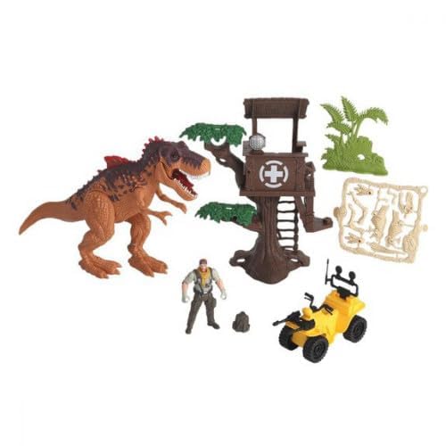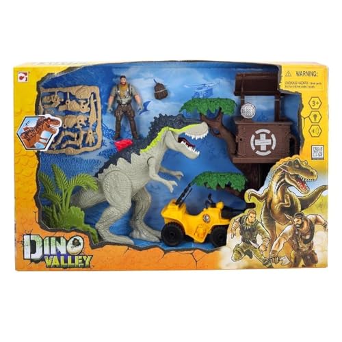Generic - مجموعة ألعاب ديناصور ضخم مع برج ساعة وسيارة من دينو فالي، مجموعة ألعاب متعددة الأزرار بإضاءة ليد ومفصلات متحركة وصوت مرتفع من جي تي جي تويز