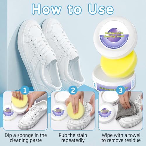 GTNCE - كريم تنظيف الاحذية البيضاء من جي تي ان سي اي، كريم تنظيف الاحذية الرياضية متعدد الوظائف وازالة البقع، منظف احذية مع اسفنجة مسح، كريم تنظيف الاحذية الابيض لجميع الاسطح