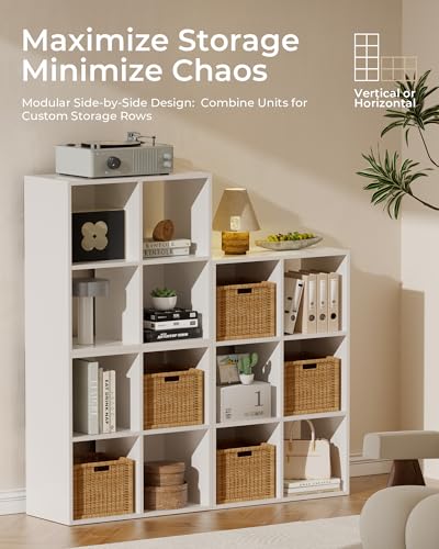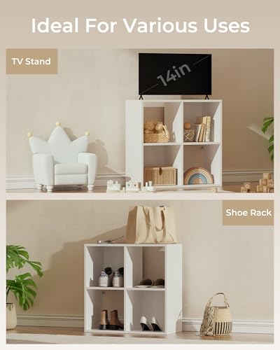 - 【منظم تخزين معياري مكون من 4 مكعب】 – منظم التخزين المكعب المدمج هذا مثالي للمكاتب أو أدوات الزينة أو الزوايا الضيقة. قم بتكديسها أو محاذاتها مع الأرفف المكعبة الأخرى لبناء تصميم تخزين قائم بذاته.
