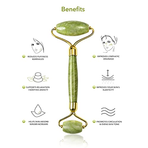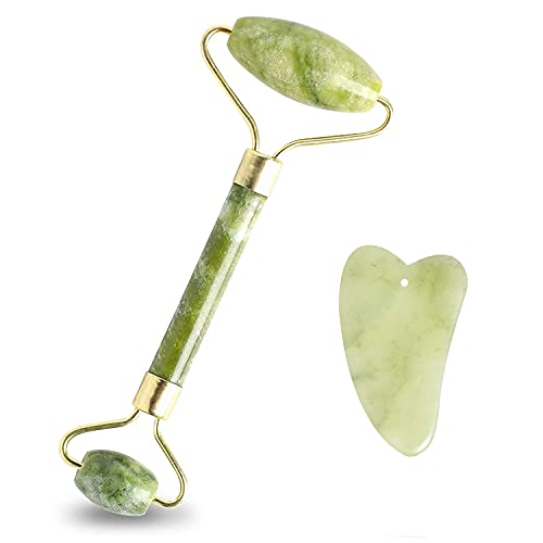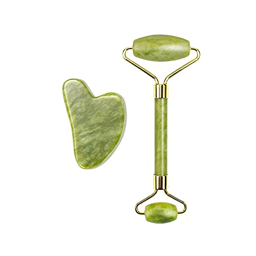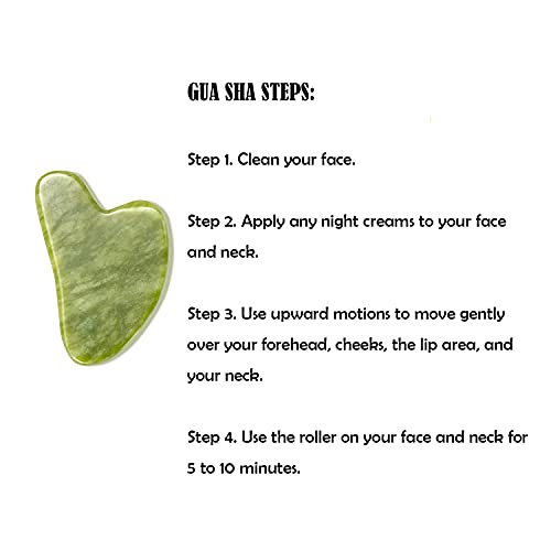 Xinsier - ادوات الوجه من جوا شا مع لوح يشم رولر جوا شا مجموعة حجر تدليك كوارتز طبيعي للعلاج بالابر للوجه والجسم واسترخاء العضلات وتخفيف الخطوط الدقيقة والتجاعيد، اخضر