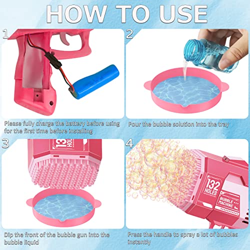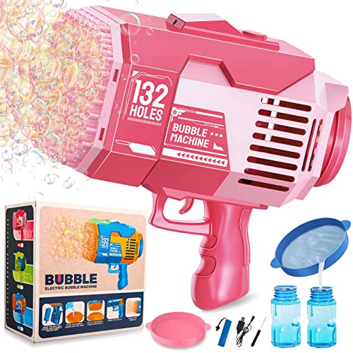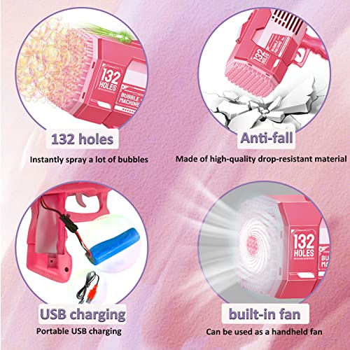 GUAHKUN - آلة فقاعات من جواهكون، مسدس فقاعات مكون من 132 فتحة، مسدس فقاعات مع أضواء ومحلول فقاعات، لعبة هدية صيفية للأطفال الصغار والبالغين للأماكن الخارجية والداخلية وحفلات أعياد الميلاد وحفلات الزفاف