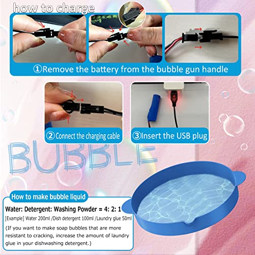 - 🚀【نصائح ودية】① بعد استلام المنتج، يجب شحنه قبل 4 ساعات على الأقل من الاستخدام الأول. ② يرجى استخدام محلول فقاعات خاص وليس الصابون الذي تصنعه بنفسك، يمكن أن يصنع المحلول الكثير من الفقاعات، وهو أمر مهم جدًا لأن الصابون ليس له نفس التأثير. ③ لا تلصق الكثير من محلول الفقاعات، فهو يمنع التصاق الفقاعات معًا. إذا كانت الفقاعات تلتصق ببعضها البعض، فإن مسح منفذ الفقاعات بقطعة قماش نظيفة يمكن أن يحل المشكلة.