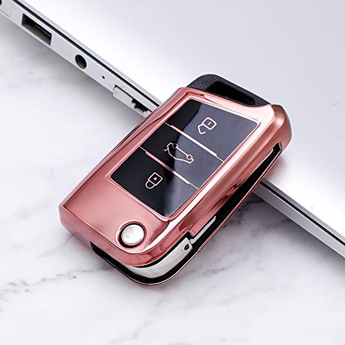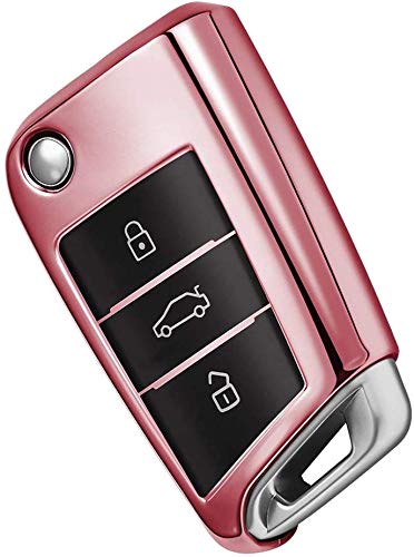 GUANGGU - جراب حماية من السيليكون لمفتاح السيارة من كروم ناعم والبولي يوريثين الحراري لجهاز التحكم عن بعد بمقاس مخصص، لون وردي