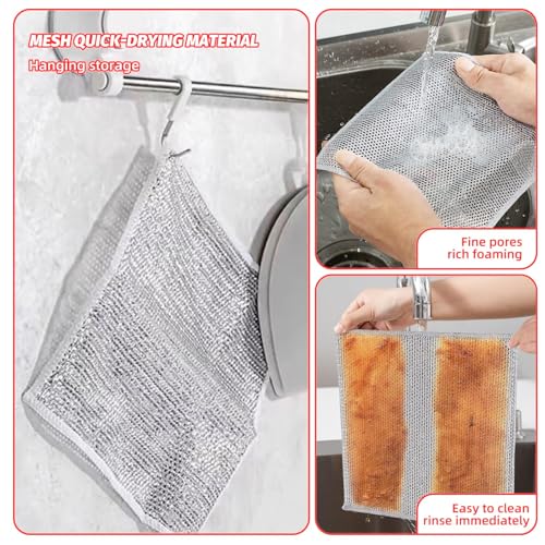 GUANKE - 10 قطع قماش غسيل الأطباق متعدد الأغراض للاستخدام الرطب والجاف من جوانكي، سلك تنظيف الأطباق متعدد الأغراض غير قابل للخدش، أدوات التقشير لتنظيف الأطباق وأحواض الغسيل والطاولات وأسطح البوتجاز، فضي، Small