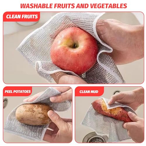 - 【أقمشة سلك لغسيل الأطباق متعددة الأغراض للاستخدام الرطب والجاف】تتميز أقمشة تنظيف الأطباق المصنوعة من المايكروفايبر بتقنية خياطة متطورة على شكل شبكة ألماس ومواد أسلاك معدن عالية الجودة، مما يجعل من السهل إزالة الصدأ وبقع الزيت وغيرها المزيد. لا تؤذي الوعاء أو اليدين. إنها مساعد جيد في مطبخك.