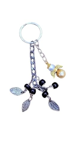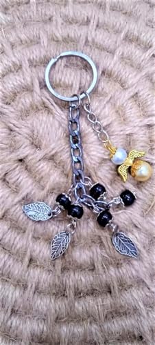 Generic - سلسلة مفاتيح بتصميم الملاك الحارس مزينة بدلايات من الخرز الأسود، بوليستر
