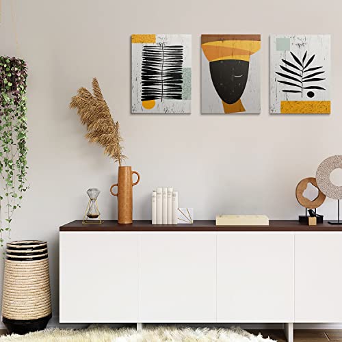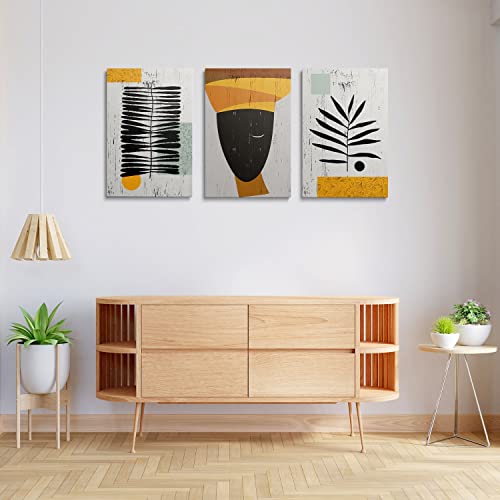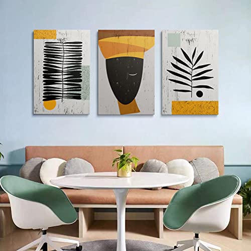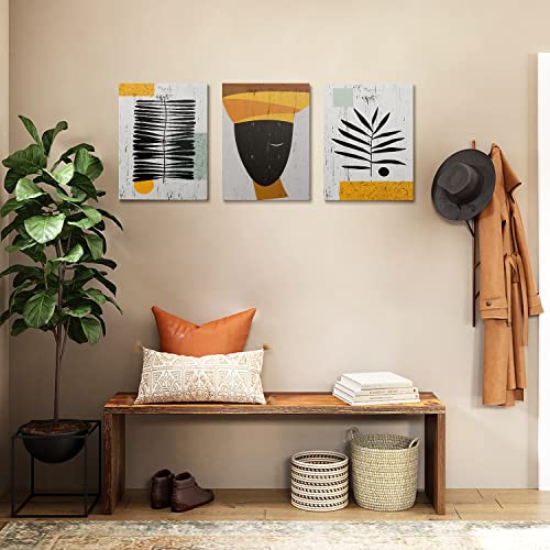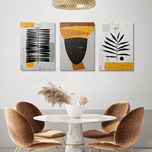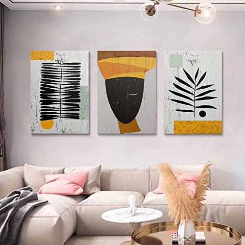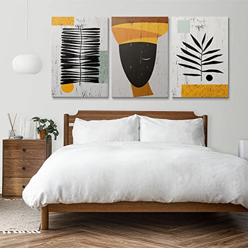 GUBIYU - مجموعة لوحات فنية جدارية من جوبيو، تصميم فني تجريدي لصورة امراة امريكية افريقية، لوحة قماشية سوداء بنمط معاصر، ديكور حائط بسيط لغرفة المعيشة وغرفة النوم، 16 × 24 بوصة، 3 قطع