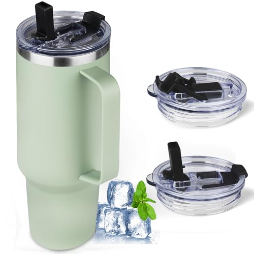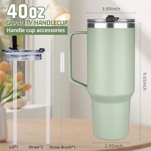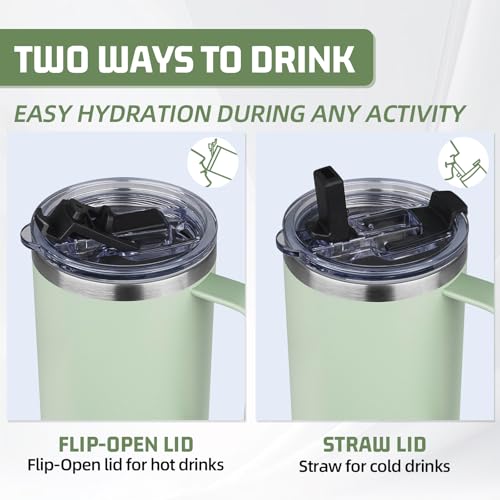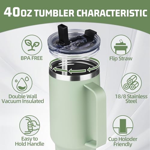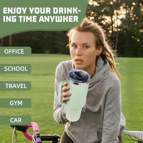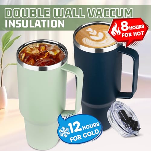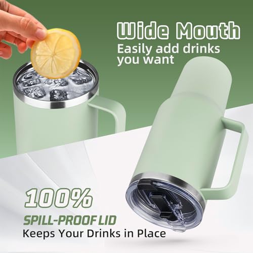 GUDEMAO - كوب 40 اونصة مع مقبض وماصة قلابة، كوب معزول بنسبة 100% مانع للتسرب مع غطاء وماصة، كوب قهوة معزول من الستانلس ستيل للسفر، كوب قهوة حراري معزول للقهوة الباردة والساخنة (شاي اخضر)