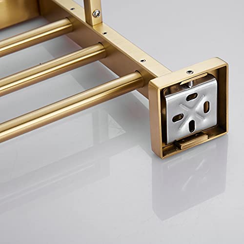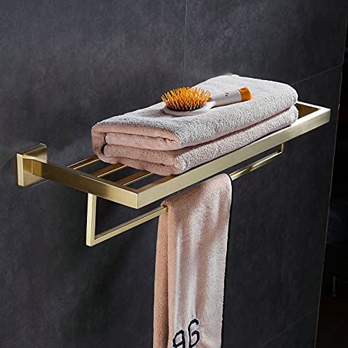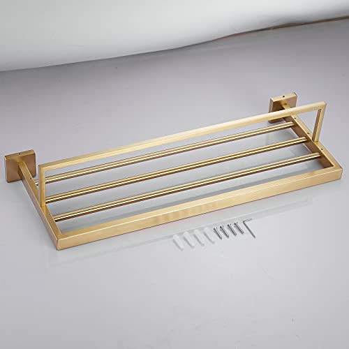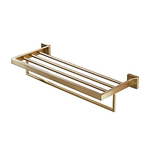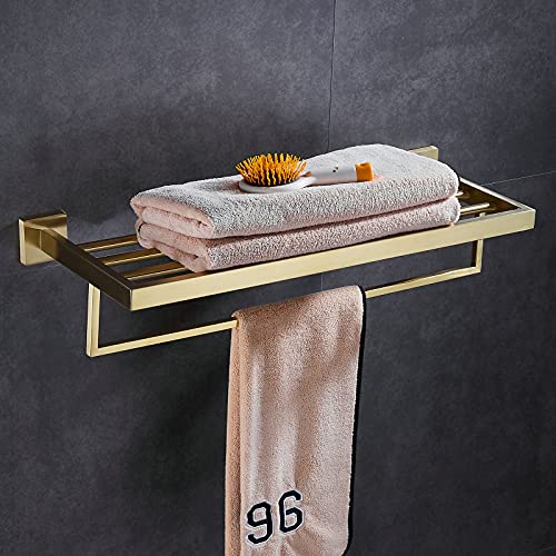 Gudetap - رف فوط حمام مع قضيب فوط فردي 56 سم للحمام والفندق GTA21103BG من جوديتاب، رف دش SUS304، حامل حائط عصري من الفولاذ المقاوم للصدأ باللون الذهبي