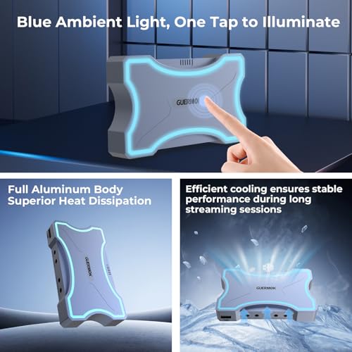 Guermok - جهاز التقاط فيديو 4K HDMI بشاشة لمس ليد بمدخل ومخرج HDMI مزدوج USB 3.0 وتسجيل فيديو 4K 60 هرتز / 2K 144 هرتز، مدخل ميكروفون/خط، 4 مخارج صوتية، تبريد فعال للبث والألعاب لجهاز سويتش 2/1 من جيرموك