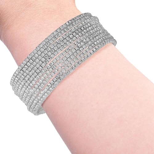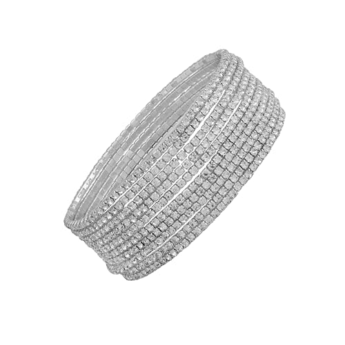 GUESS - جيس سوار مطاطي مرصع باحجار الراين مكون من 10 قطع