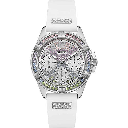 GUESS - ساعة جيس 40 ملم مزينة بالكريستال, أبيض/فضي, One Size, ليدي فرونتير GW0045L1، انالوج، للنساء