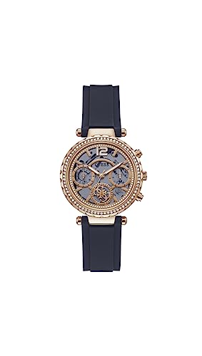 GUESS - جيس ساعة سولستيس للنساء 36 ملم بمينا ازرق وسوار سيليكون - GW0484L2، كحلي، تناظري