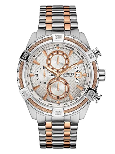 GUESS - ساعة عملية كاجوال رجال انالوج ستانلس ستيل - W0522G4، بمينا فضي