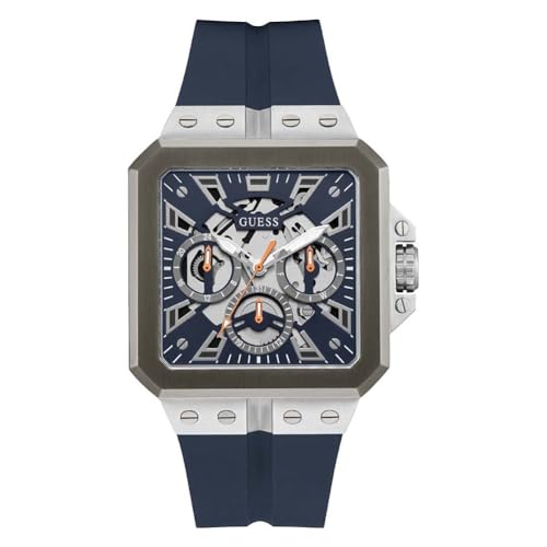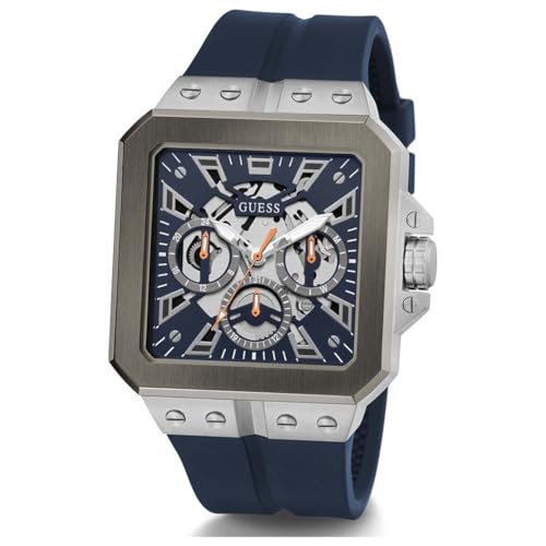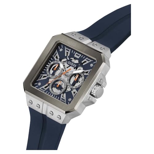 GUESS - جيس ساعة للرجال 42 ملم - سوار كحلي ومينا كحلي وهيكل فضي اللون