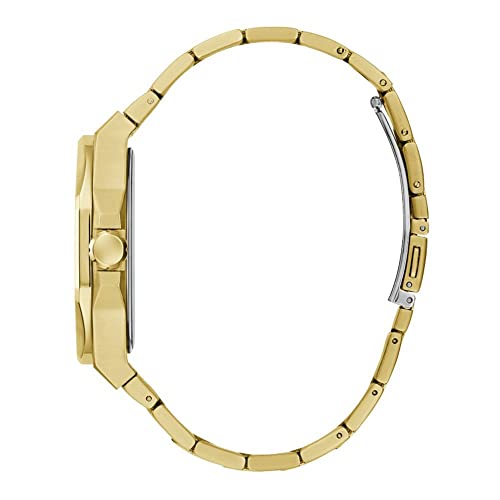 GUESS - ساعة جيس للرجال مقاس 42 ملم بسوار ذهبي ومينا أخضر وهيكل ذهبي, لون ذهبي، انالوج