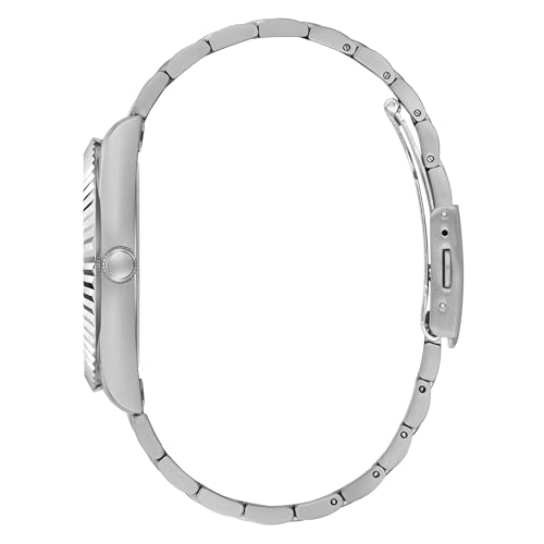 GUESS - ساعة يد للرجال مقاس 42 ملم بسوار فضي ومينا زرقاء وهيكل فضي