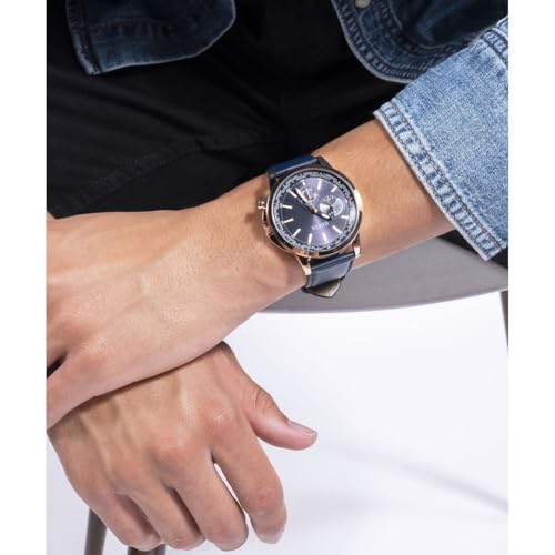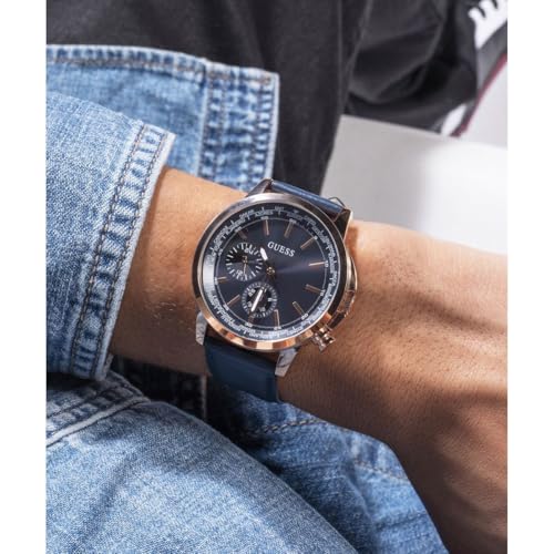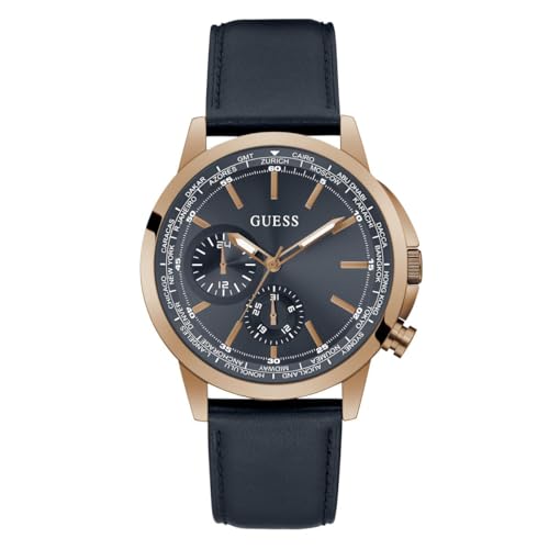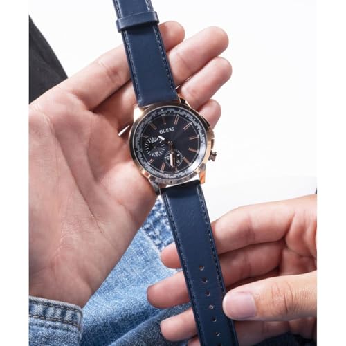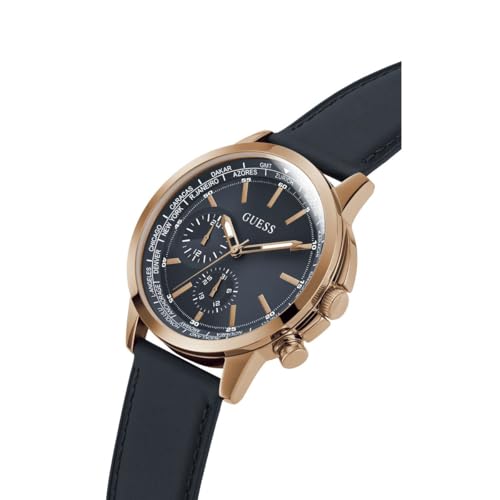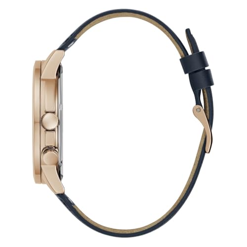 GUESS - ساعة يو اس للرجال بلون ذهبي وردي وجلد كحلي متعددة الوظائف