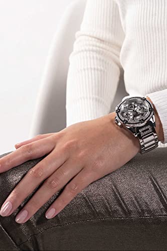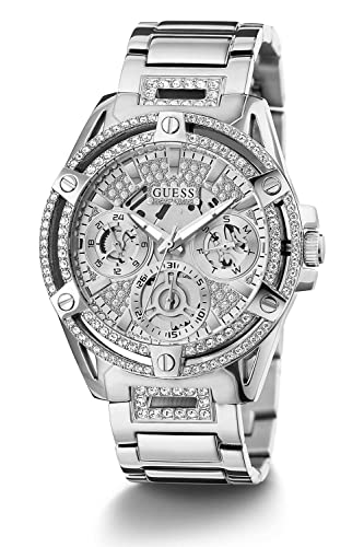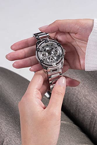 GUESS - ساعة نسائية فضية اللون مرصعة باحجار الراين من يو اس