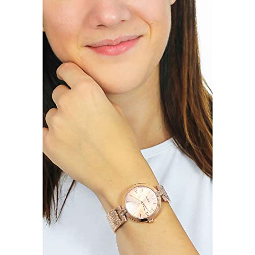 GUESS - ساعة جيس W1228L3 دائرية انالوج بعقارب ستانلس ستيل مع شعار محفور للنساء - ذهبي