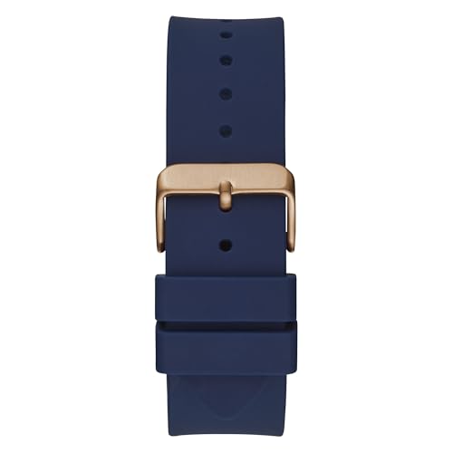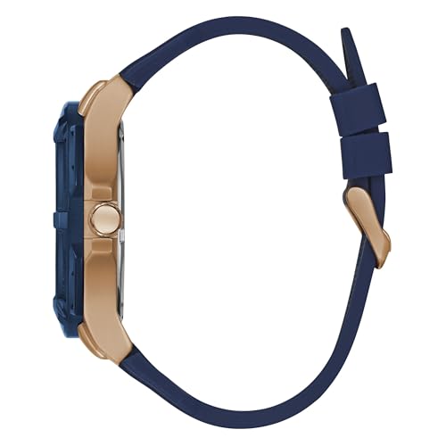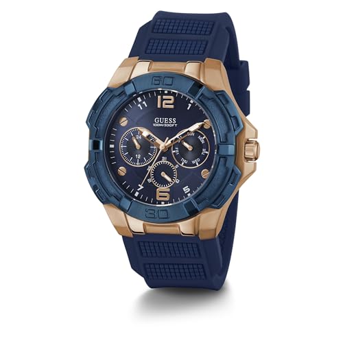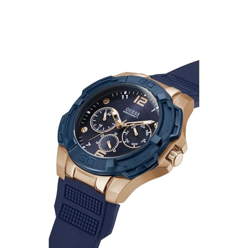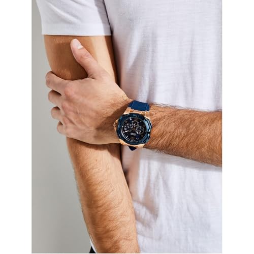 GUESS - ساعة سيليكون لونين دائرية انالوج بعقارب كرونوجراف ومينا ازرق بمؤشرات مختلفة اللون للرجال من جيس Genesis - وذهبي