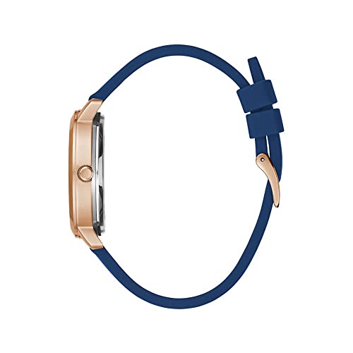 GUESS - ساعة يد كواترو انالوج بعقارب بمينا لون روز جولد وسوار من السيليكون مقاس 36 ملم ازرق للنساء جيس - موديل GW0452L1 أزرق