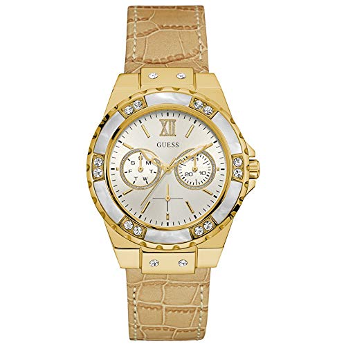 GUESS - جس ساعة عملية كاجوال للنساء انالوج بعقارب جلد - W0775L2، بمينا أبيض