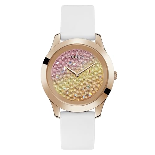 GUESS - جيس ساعة انالوج بعقارب للنساء بسوار من السيليكون، ابيض، مقاس L، W1223L3-AMZUK