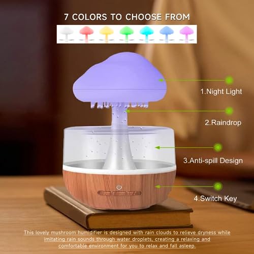 - مرطب سحابي: تم تصميم مرطب الفطر الجميل هذا بسحب المطر لتخفيف الجفاف بينما يتم محاكاة ضوضاء المطر بواسطة قطرات الماء، مما يخلق بيئة مريحة ومريحة يمكنك من خلالها الاسترخاء والنوم.