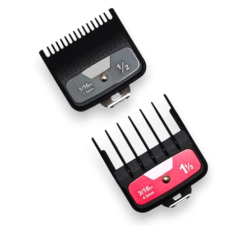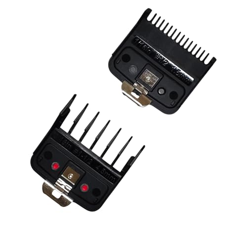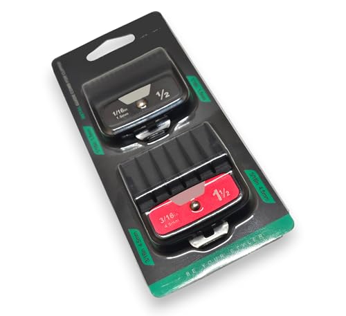- المقاسات المتاحة: مشط أسود 1/16 انش (1.5 ملم) ومشط أحمر 3/16 انش (4.5 ملم) لخيارات قص متعددة