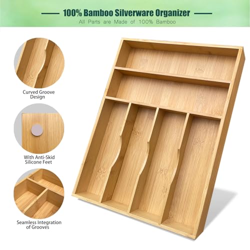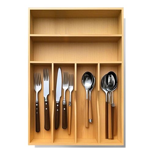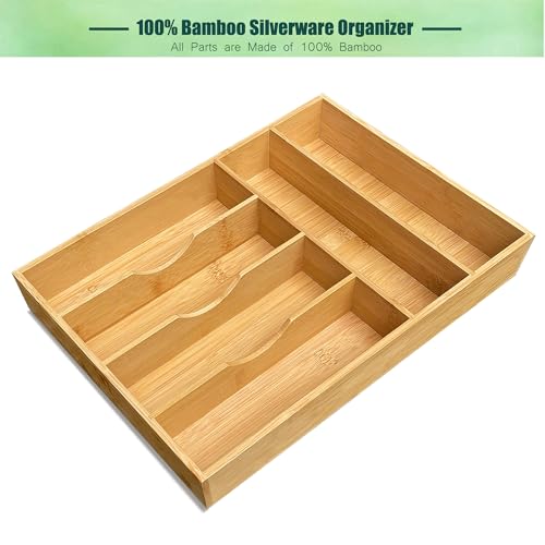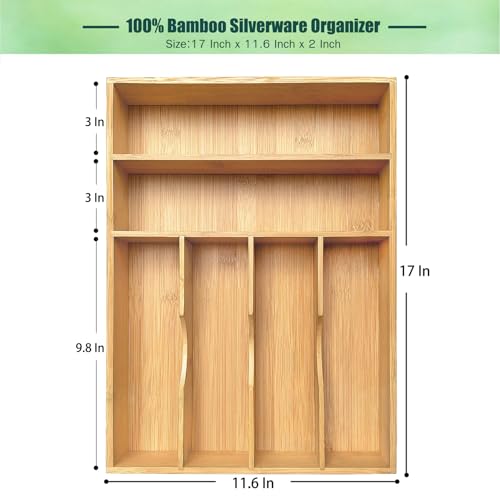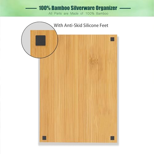 guiogc - منظم ادراج المطبخ من الخيزران، 11.6 انش عرض × 17 انش ارتفاع، حامل صينية ادوات المائدة الفضية، صينية ادوات مائدة خشبية للاواني الفضية والاطباق وغرفة النوم وتنظيم اللوازم المكتبية