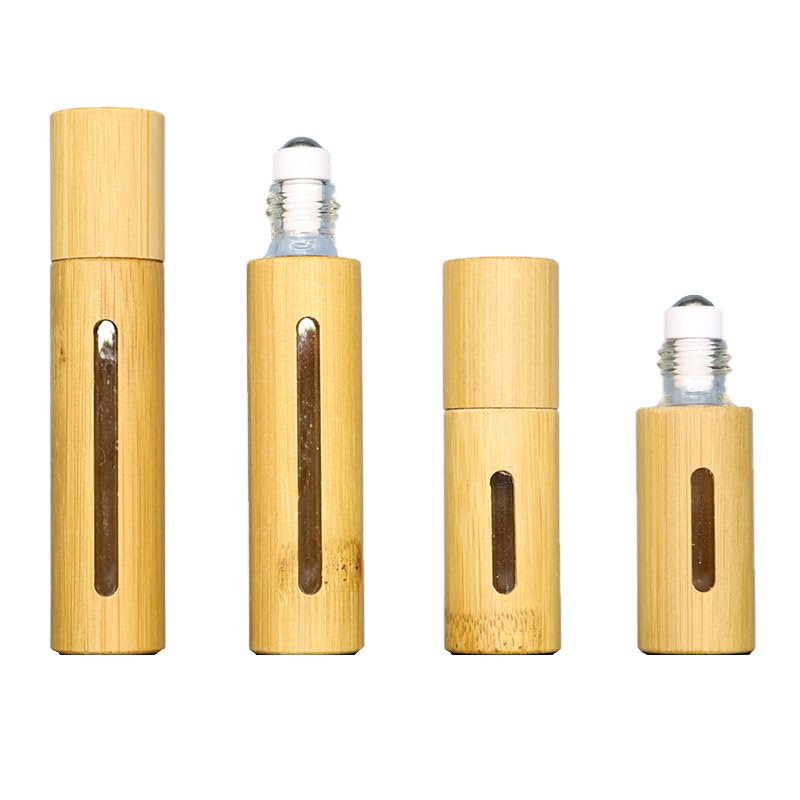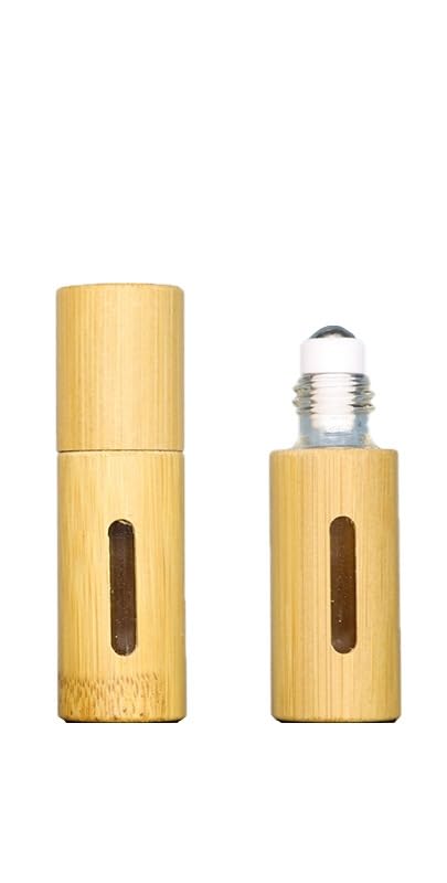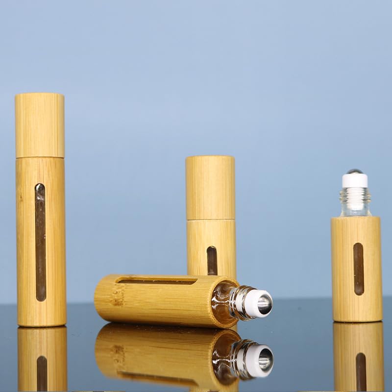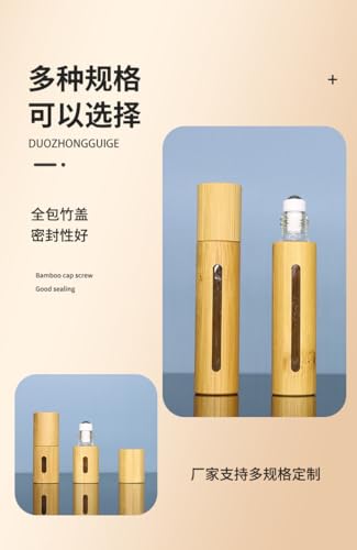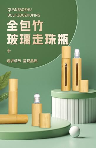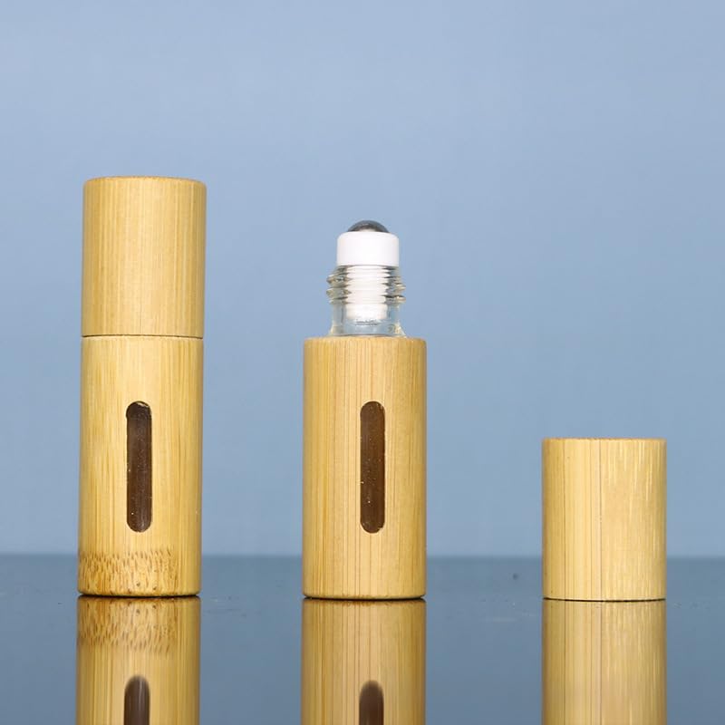 GuLiNiao - عبوة من زجاجتين رول أون زجاجية فاخرة بغطاء بامبو طبيعي مع بليه متحركة من الفولاذ المقاوم للصدأ، قابلة لإعادة التعبئة للزيوت العطرية والعطور المركزة والعلاج بالروائح (5ml)