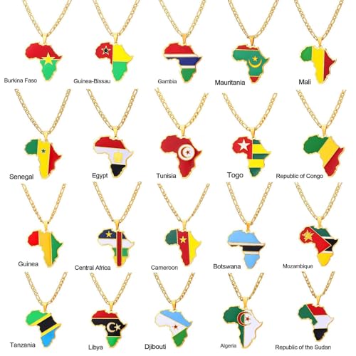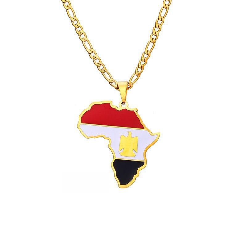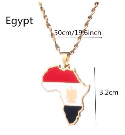 GuLiNiao - قلادة خريطة مصر- قلادة على شكل أفريقيا بتصميم علم مصر، مجوهرات وطنية مطلية بالذهب للرجال والنساء، هدية تعكس الفخر الوطني، سلسلة من الفولاذ المقاوم للصدأ