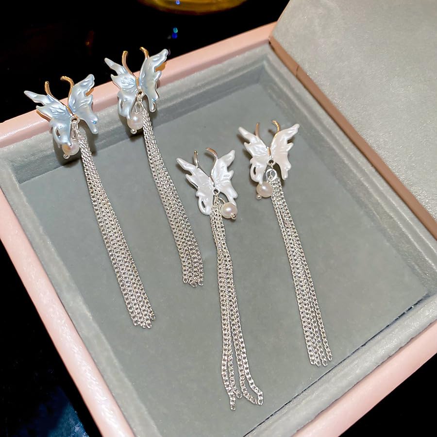 GuLiNiao - ✨ GuLiNiao – أقراط "رقصة الفراشة" الفاخرة بلؤلؤ ماء عذب وسلاسل متلألئة، لتجعلك متألقة ومميزة في كل مناسبة ✨
