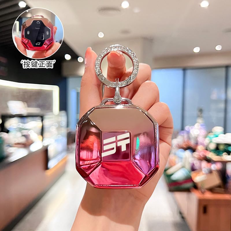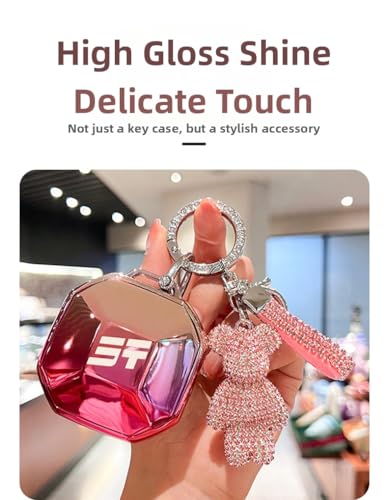 GuLiNiao - غطاء مفتاح فوب من الكروم للسيارة، حافظة مفاتيح أنيقة مع إكسسورارات من جولينياو، وردي 2