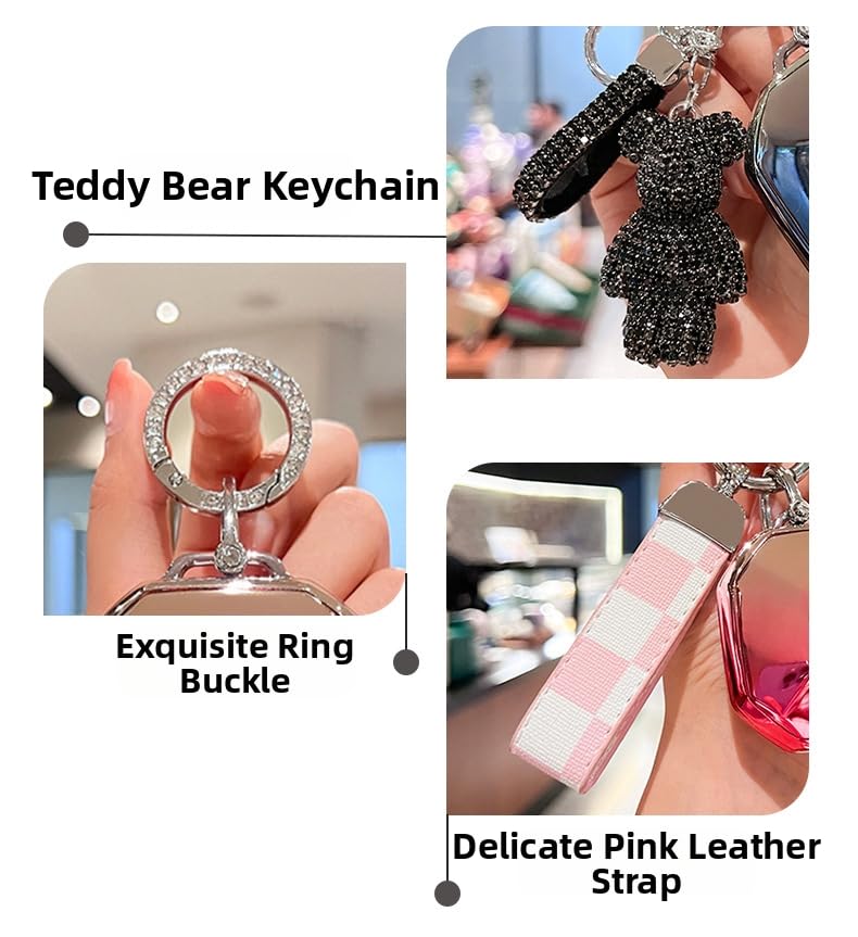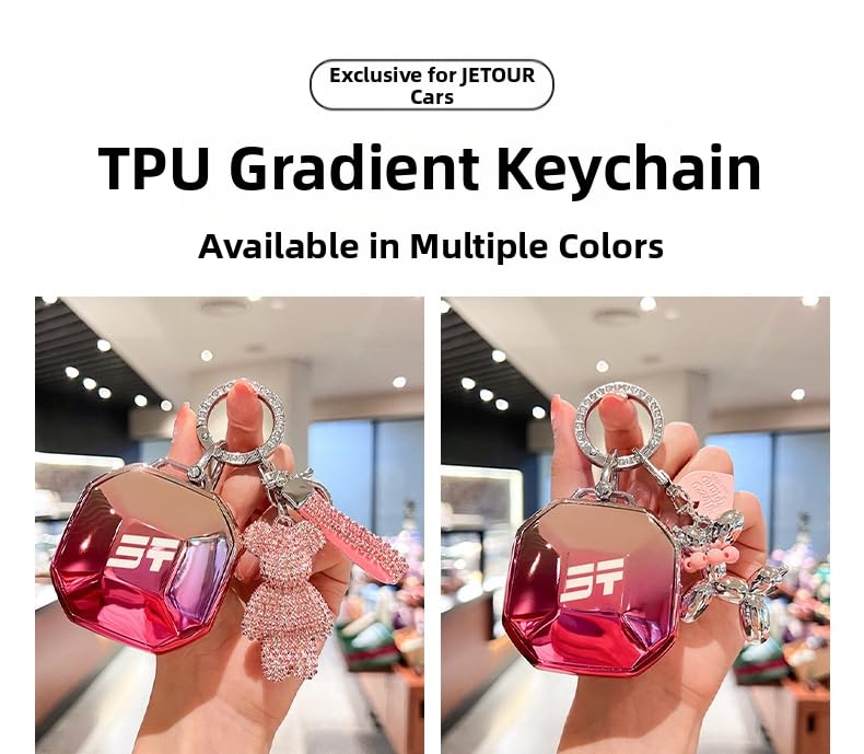 - تصميم فاخر مع أنماط مخصصة - يتميز بشكل هندسي لامع مع شعار "JT"، متوفر بألوان مثل الكروم الأسود والتدرج الوردي، بالإضافة إلى سلاسل مفاتيح أنيقة (حلقات حجر الراين، قلادات على شكل دب كريستال أو بالون) للحصول على مظهر فريد.