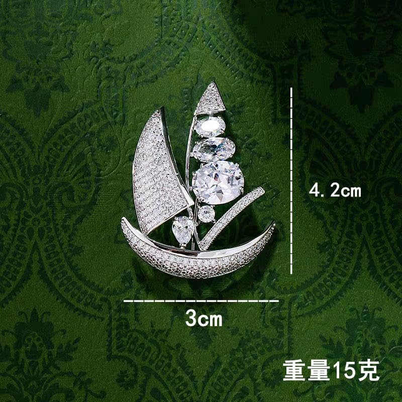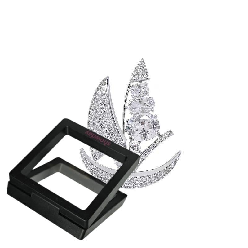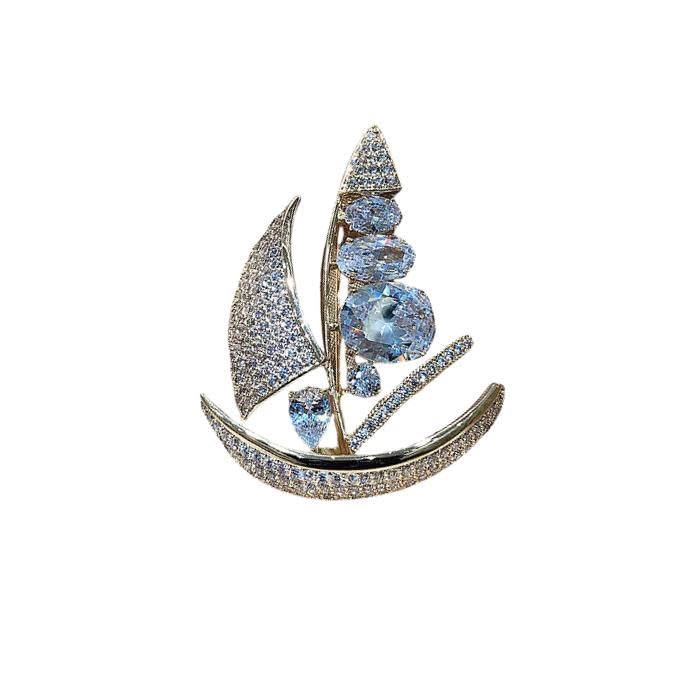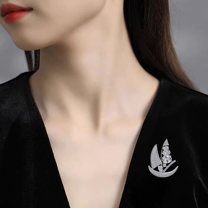 GuLiNiao - GuLiNiaoبروش فاخر مرصع بالكريستال على شكل مركب – تصميم أنيق للنساء – فضي –