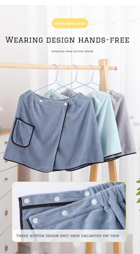 GuLiNiao - فوطة حمام قابلة للارتداء فائقة الامتصاص بتصميم ناعم وقابل للتعديل للحمام وحمام السباحة والشاطئ والمنتجعات الصحية، فوطة بنمط ملفوف مزودة بأستك للرجال من جولينياو، أزرق، 40 سم × 1.4 م