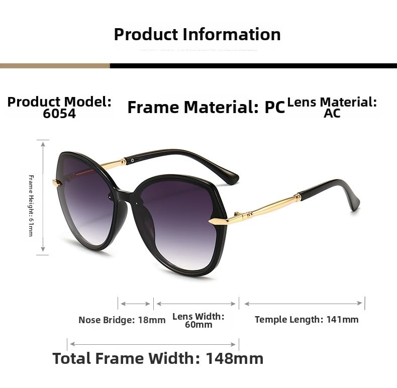 GuLiNiao - نظارات شمسية نسائية كبيرة الحجم موديل 6054، إطار أنيق من PC وعدسات AC فاخرة، حماية من الأشعة فوق البنفسجية، موضة عصرية مناسبة للسفر والقيادة والحفلات