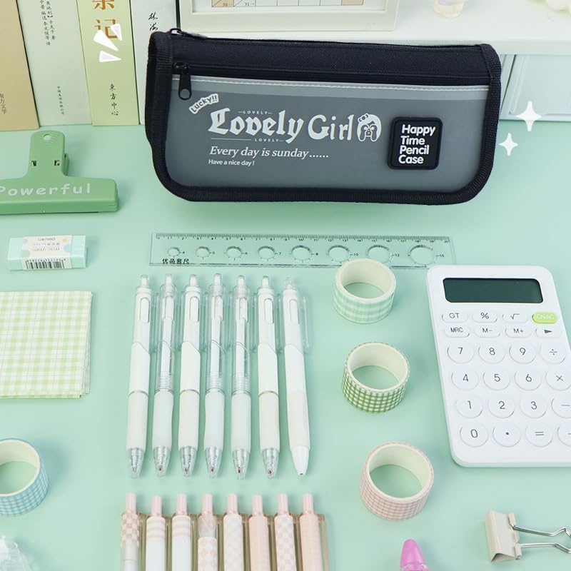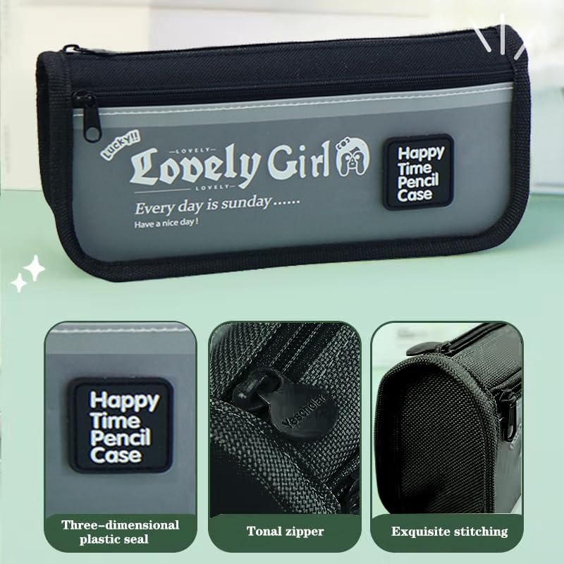GuLiNiao - مقلمة من جولينياو بسوستة بسعة كبيرة من القماش الجمالي ومقصورات لتنظيم الأدوات المكتبية للأطفال البنات والأولاد والمراهقين والطلاب لمستلزمات المدرسة والمكياج (أسود)