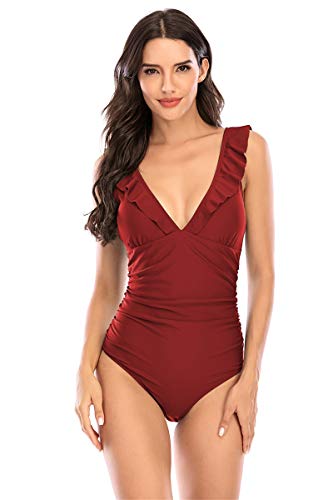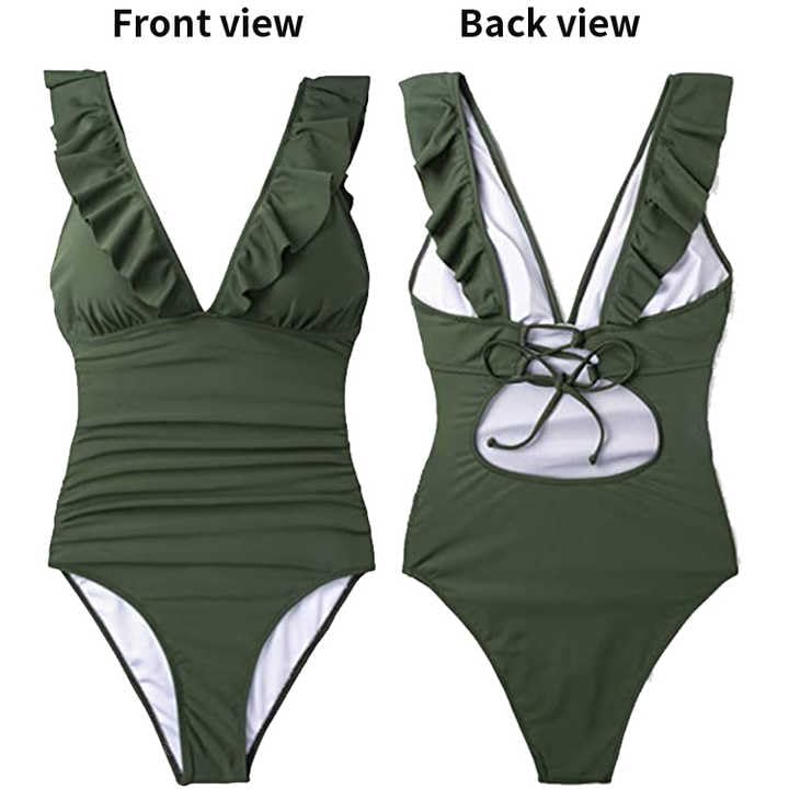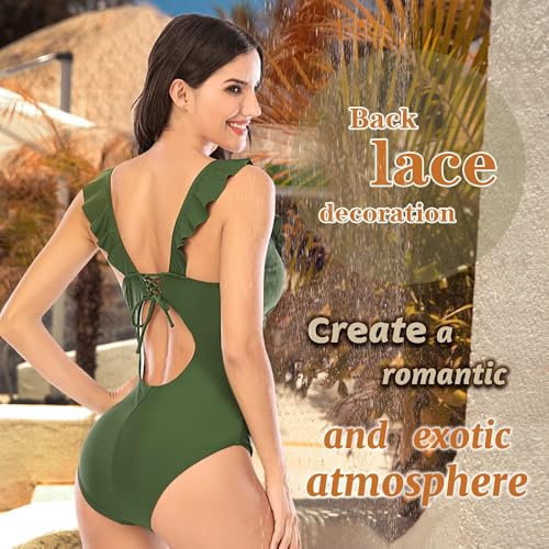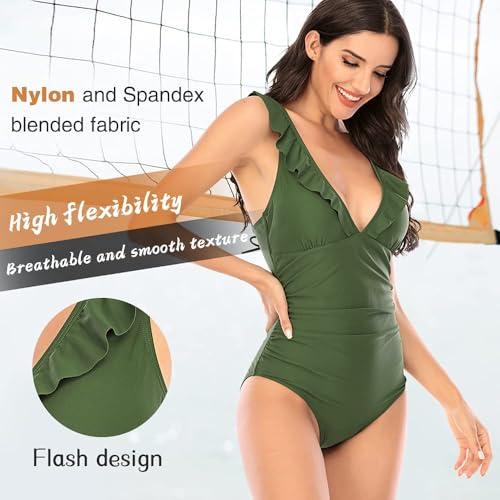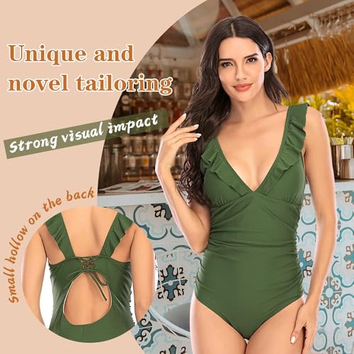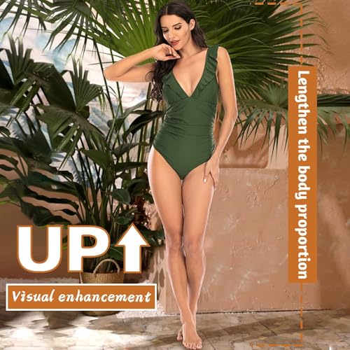 GuLiNiao - ملابس سباحة مثيرة للنساء قطعة واحدة – مايوه أنيق للتحكم في البطن مع فتحة رقبة V عميقة وكشكشة، بدلة سباحة بخصر مرتفع لتنحيف وإطلالة أنثوية جذابة